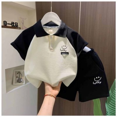 J 2 Pieces Combo – T Shirt And Pant Set- Design Smile Star- Print Color Black