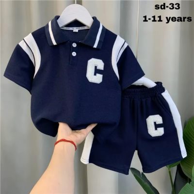 D 2 Pieces Combo – T Shirt And Pant Set Design C Color Navy Blue + White