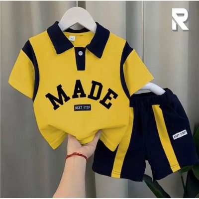 B 2 Pieces Combo – T Shirt And Pant Set Design MADE Color Yellow + Navy Blue